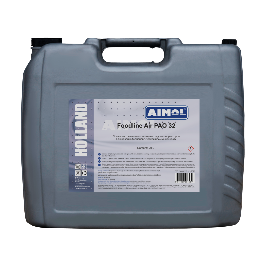 - Для обеспечения наивысших эксплуатационных свойств рекомендуется полностью слить предыдущее масло перед заливкой AIMOL Foodline Air PAO